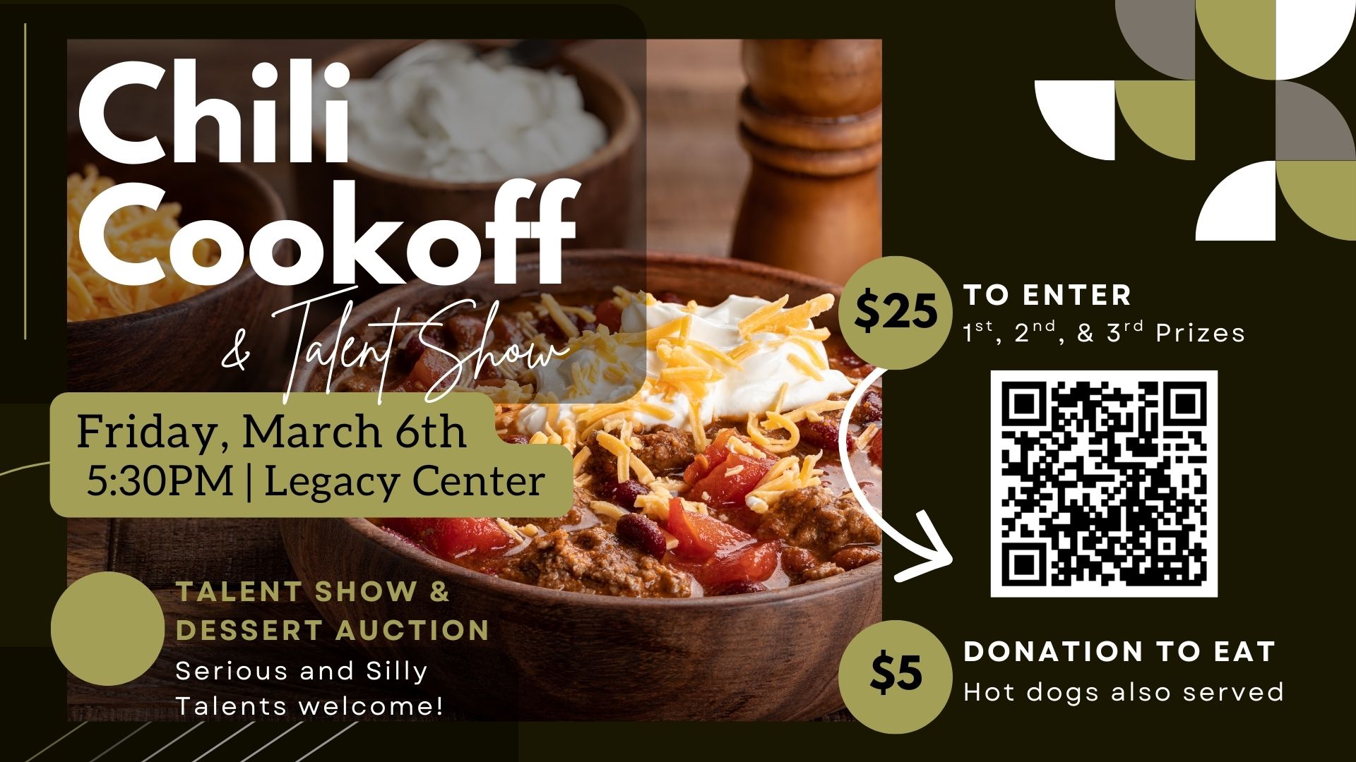 Our dessert auction will take place during the chili competition in the Generations Room. Desserts submitted with the recipe will begin at a higher bid.